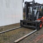 Anbaugerät: Seitenschieber, Zinkenverstellgerät: AK-AK 520 - 2210 mm / Fahrersitz: Fahrerkomfortsitz Grammer (Stoff) mit Armlehne, luftgefedert und mit Sitzheizung / Beleuchtung: 2x Arbeitsscheinwerfer vorne und hinten, 1x Rücklicht, Bremslicht, 2x seitliche rote Leuchten, 1x Bluespot hinten, 1x Blitzleuchte / Zusatzausstattung: Wetterschutzkabine mit Heizung, Schiebefenster links und rechts, Sonnenschutz vorne und oben, Frontscheibenwischer mit Wischwasseranlage, Heckscheibenwischer mit Wischwasseranlage und Heckscheibenheizung, Dachscheibenwischer, Panoramarückspiegel, Rückspiegel links und rechts, Joystick, Doppelgasflaschenhalterung und Anhängervorrichtung